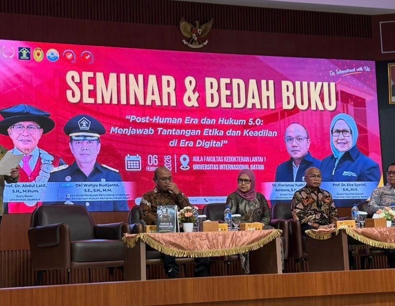 Prof. Dr. Abdul Latif, S.H., M.HumBATAM — Universitas Internasional Batam (UIB) menggelar Seminar dan Bedah Buku bertajuk “Post-Human Era dan Hukum 5.0: Menjawab Tantangan Etika dan Keadilan di Era Digital” pada Jumat, 6 Februari 2026. Kegiatan ini dilaksanakan di Aula Fakultas Kedokteran Lantai 1 Universitas Internasional Batam dan dihadiri oleh akademisi, praktisi hukum, mahasiswa, serta pemerhati isu hukum dan teknologi.