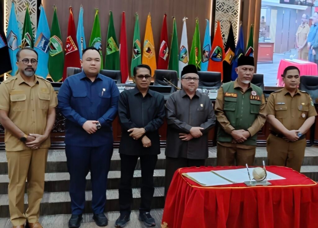 PADANG – DPRD Provinsi Sumatera Barat (Sumbar) bersama Gubernur Mahyeldi Ansharullah resmi mengesahkan Ranperda tentang Penyelenggaraan Kemudahan Berusaha dan Ranperda tentang Fasilitasi Penyelenggaraan Pesantren menjadi Peraturan Daerah melalui penandatanganan persetujuan bersama dalam rapat paripurna di Gedung DPRD Sumbar. Rapat yang berlangsung Senin pagi itu dipimpin Ketua DPRD Muhidi, dan dihadiri jajaran pimpinan daerah serta berbagai instansi terkait (8/12/2025).