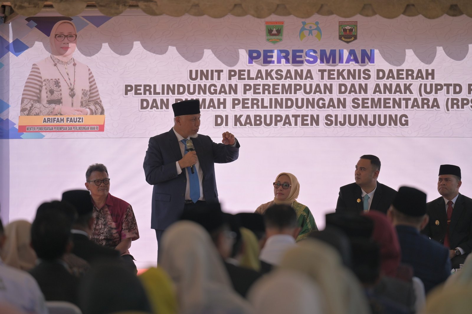 SIJUNJUNG – Mahyeldi Ansharullah bersama Menteri Pemberdayaan Perempuan dan Perlindungan Anak RI, Arifatul Choiri Fauzi, meresmikan Unit Pelaksana Teknis Daerah Perlindungan Perempuan dan Anak (UPTD PPPA) dan Rumah Perlindungan Sementara (RPS) milik Pemerintah Provinsi Sumatera Barat di Muaro, Sijunjung. Peresmian ini menjadi tonggak penting dalam memperkuat sistem perlindungan bagi kelompok rentan di daerah tersebut, Rabu (18/02/2026).
