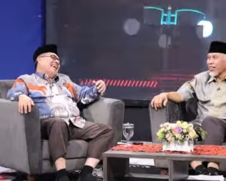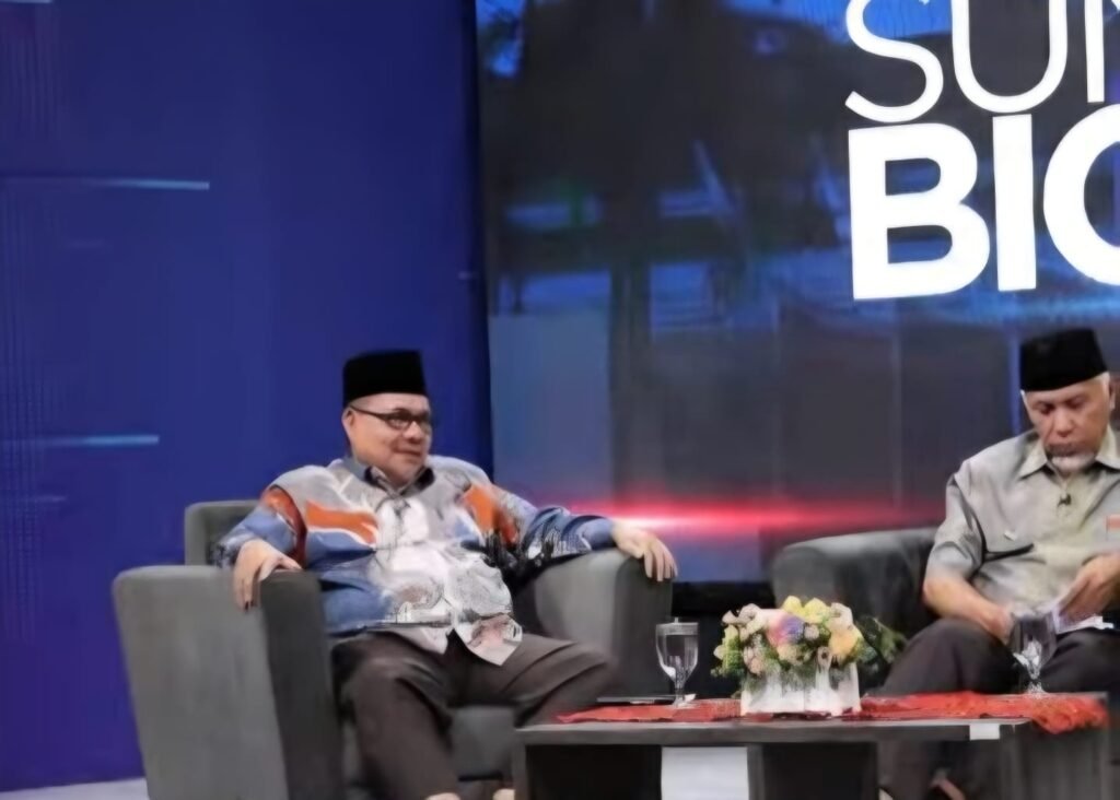 PADANG — Ketua DPRD Provinsi Sumatera Barat, Drs. H. Muhidi, M.M., bersama Gubernur Sumbar, H. Mahyeldi, tampil dalam Program Ngobrol Basamo “Sumbar Bicara” yang disiarkan dari Studio TVRI Sumatera Barat, Kamis (25/9/2025). Kehadiran kedua pimpinan daerah ini menjadi momentum penting untuk menunjukkan kekompakan antara lembaga eksekutif dan legislatif dalam mendorong pembangunan daerah.