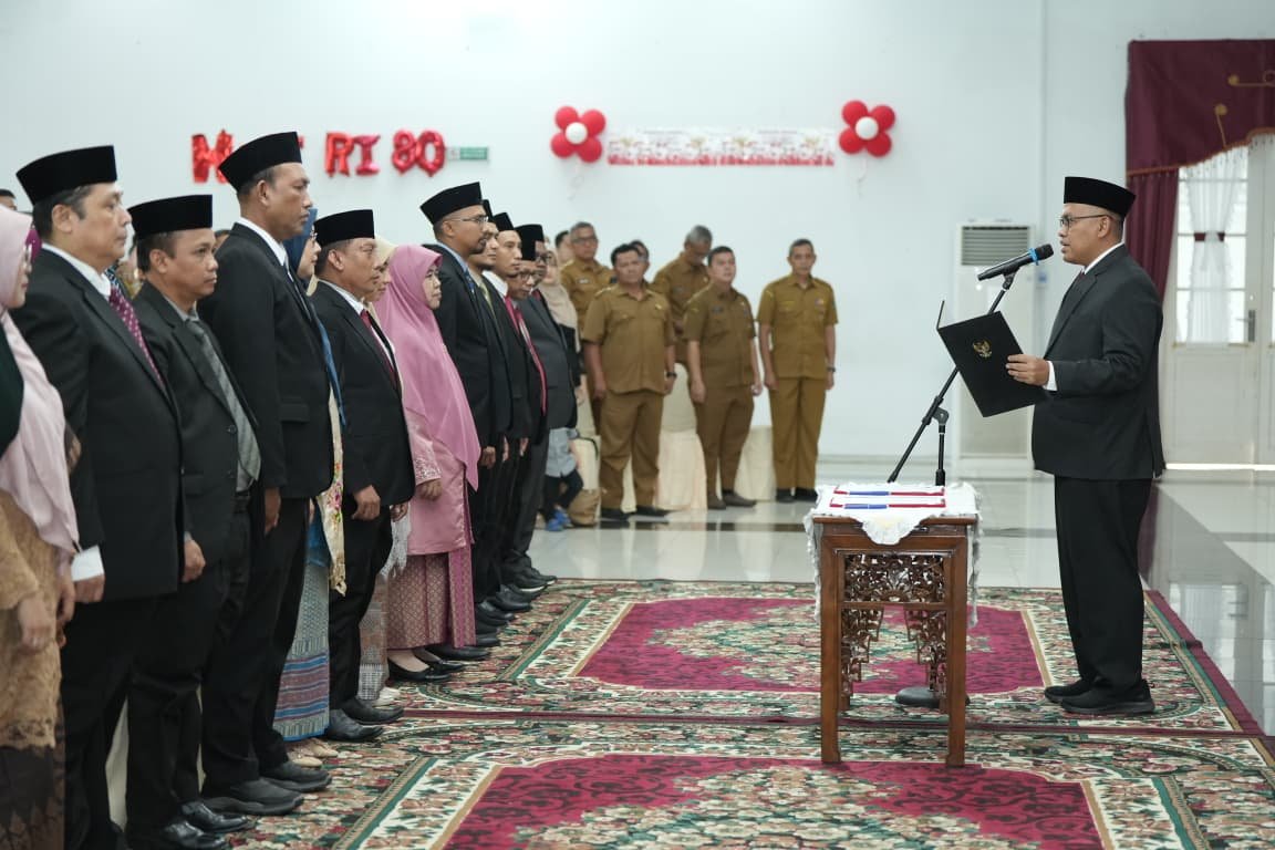 PADANG – Sekretaris Daerah Provinsi Sumatera Barat (Sekdaprov Sumbar), Arry Yuswandi mengukuhkan dan melantik 53 orang pejabat administrator dan pengawas di lingkungan Pemerintah Provinsi Sumbar. Prosesi pelantikan berlangsung di Auditorium Gubernuran, Selasa siang (2/9/2025).
