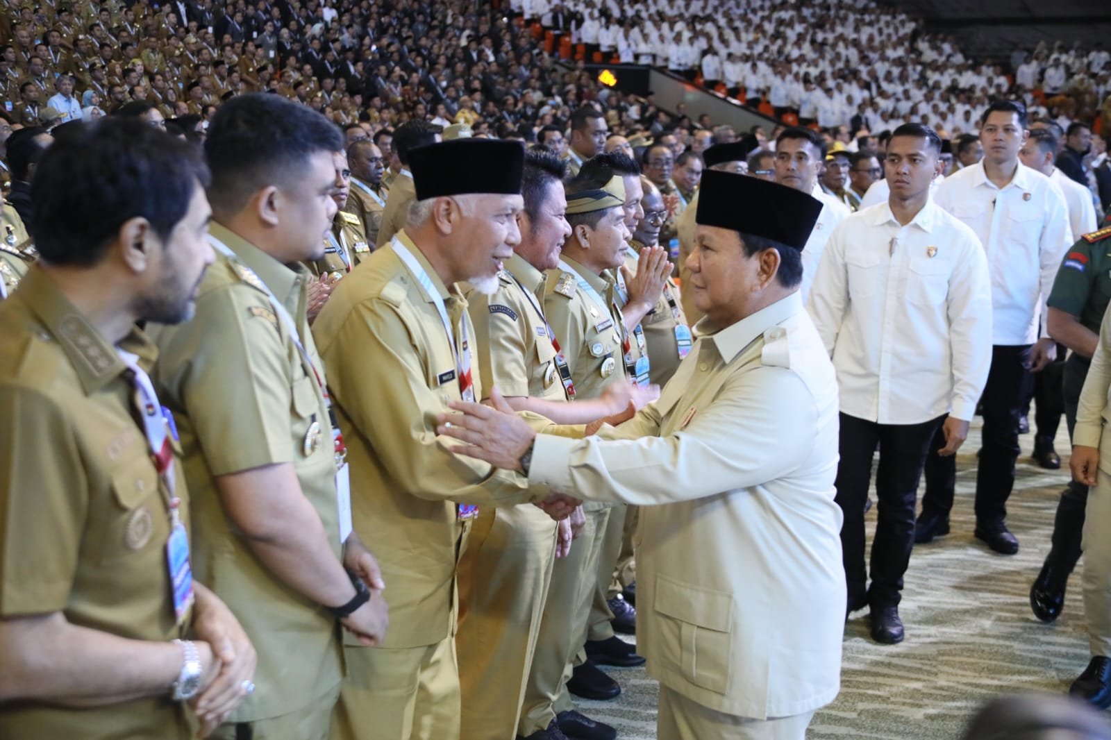 Gubernur Sumatera Barat, Mahyeldi Ansharullah, menyampaikan ucapan terima kasih secara langsung kepada Presiden Republik Indonesia, Prabowo Subianto, atas perhatian dan dukungan pemerintah pusat dalam penanganan bencana hidrometeorologi yang melanda sejumlah daerah di Sumatera Barat. Ucapan tersebut disampaikan Mahyeldi saat bertemu dan bersalaman dengan Presiden di sela Rapat Koordinasi Nasional Pemerintah Pusat dan Daerah Tahun 2026 di Sentul International Convention Center (SICC), Kabupaten Bogor, Jawa Barat. Senin (2/2/2026).