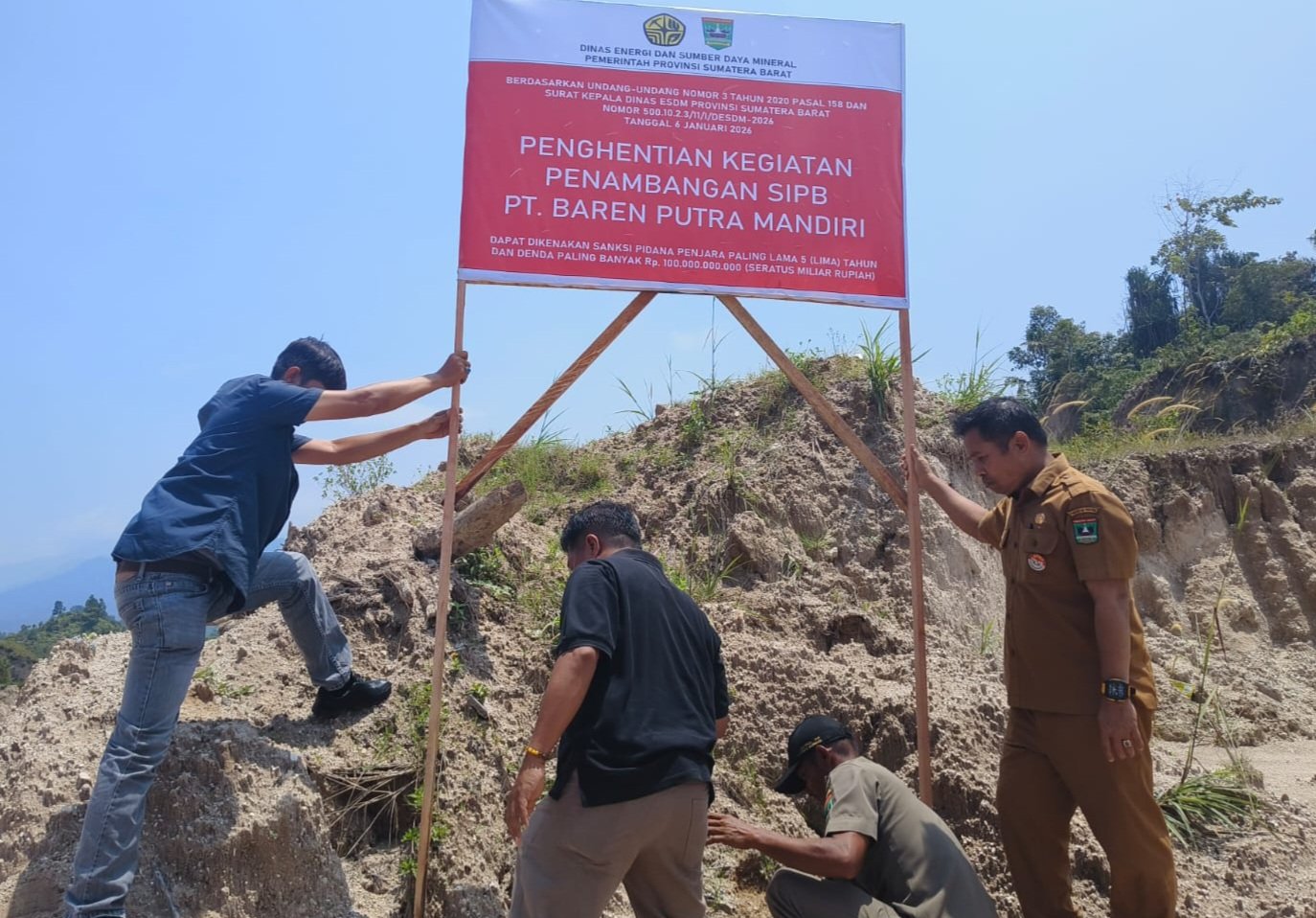 PADANG PARIAMAN — Pemerintah Provinsi Sumatera Barat menghentikan sementara aktivitas penambangan batuan di Nagari Pasie Nan Laweh, Kecamatan Lubuk Alung, Kabupaten Padang Pariaman. Langkah tegas ini diambil setelah ditemukan pelanggaran ketentuan perizinan oleh dua badan usaha pemegang Surat Izin Penambangan Batuan (SIPB).