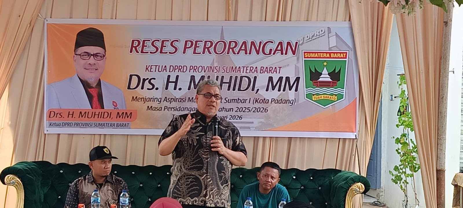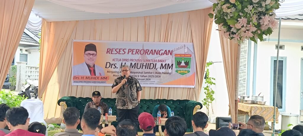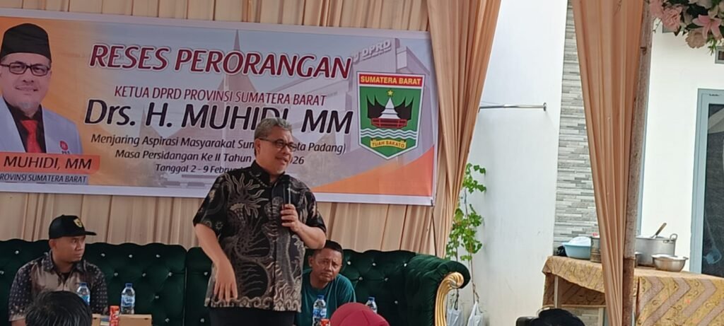 PADANG — Kegiatan reses Ketua DPRD Provinsi Sumatera Barat, Muhidi, di Kelurahan Lubuk Minturun, Kecamatan Koto Tangah, berlangsung penuh keakraban dan partisipasi warga. Bertempat di Griya Syahlinar, masyarakat memanfaatkan pertemuan tersebut untuk menyampaikan berbagai kebutuhan dan harapan, mulai dari persoalan infrastruktur hingga dukungan ekonomi kerakyatan, Kamis (5/2/2026).