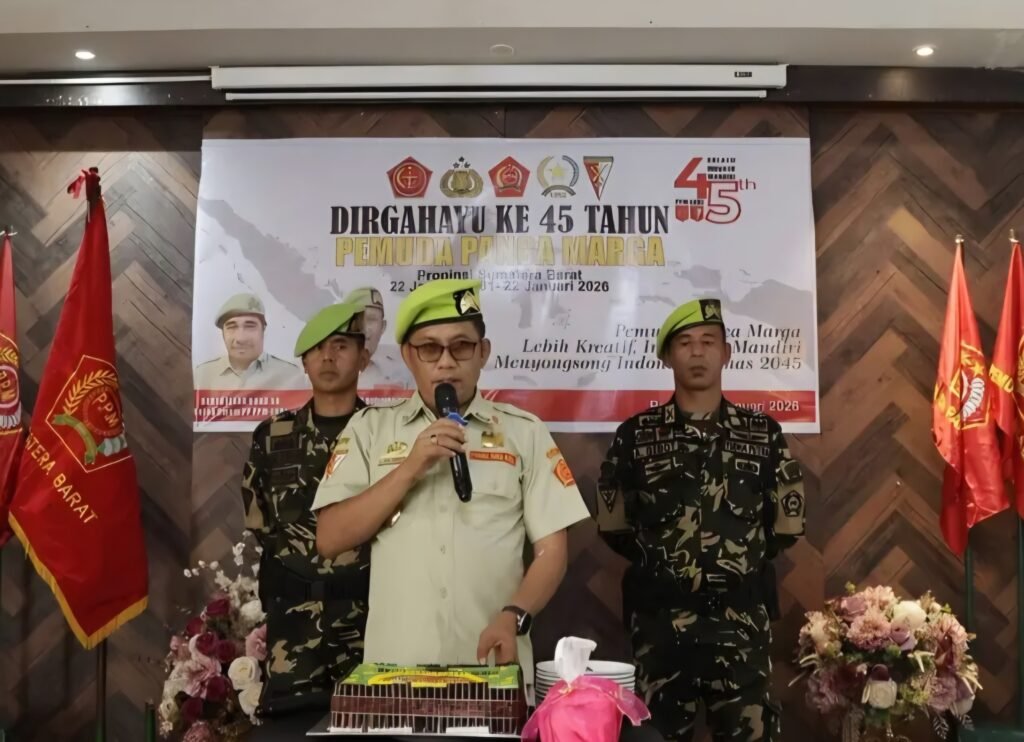 Padang, – Wakil Ketua DPRD Sumatera Barat, Evi Yandri Raio Budiman, yang juga menjabat Ketua Pengurus Daerah Pemuda Panca Marga (PPM) Sumbar, mengajak seluruh kader PPM terus menanamkan semangat perjuangan serta nilai kebangsaan di tengah masyarakat. Ajakan itu disampaikannya saat peringatan HUT PPM Sumbar ke-45 di RM Sederhana, Padang, Sabtu (31/1/2026).